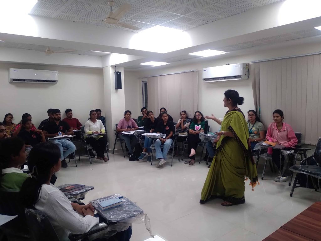 Dr.Mrunalini Fadanis took the topic of Goal setting and Time Management.Mr.Ganesh Birajdar conducted on Self Analysis,while Mrs.Ojaswini Jamdar took session on Communication skills. On the topics CV building and Personal Branding ,Ms. Sanchal Tarode guided. Course coordinator Dr.Prof.Sampada Naseri took interactive and participatory sessions on Importance of PD and Stress Management.